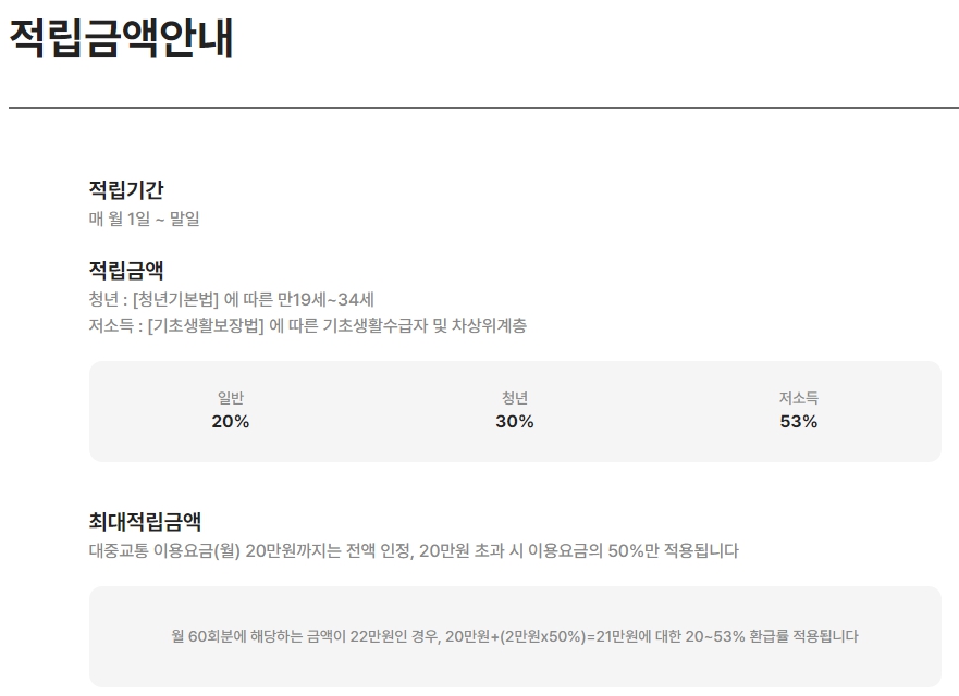 포인트 적립: 대중교통 이용 금액의 일정 비율을 포인트로 적립해줍니다.