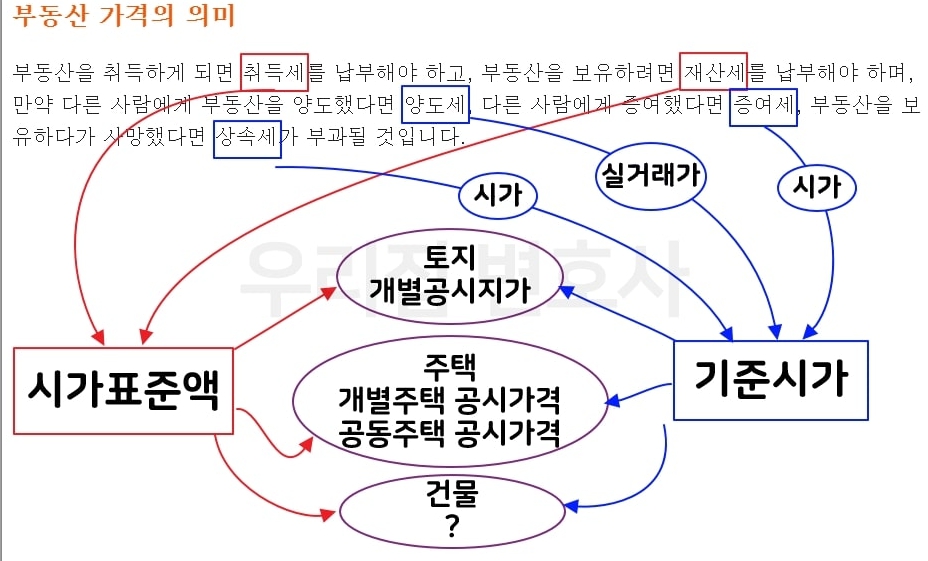 - 기준시가: 양도세, 증여세, 상속세 등 국세 부과 기준의 부동산 가격입니다.