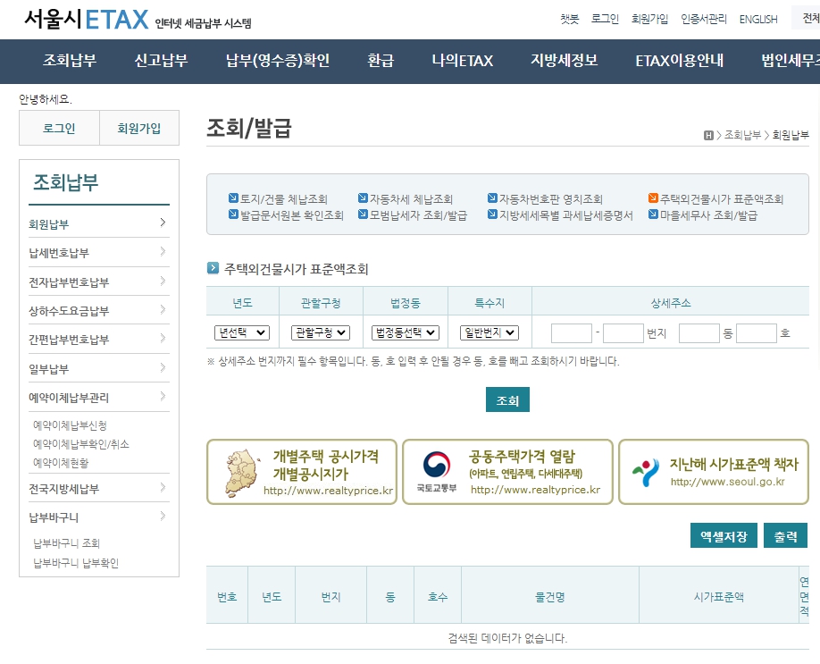 시가표준액 조회 방법